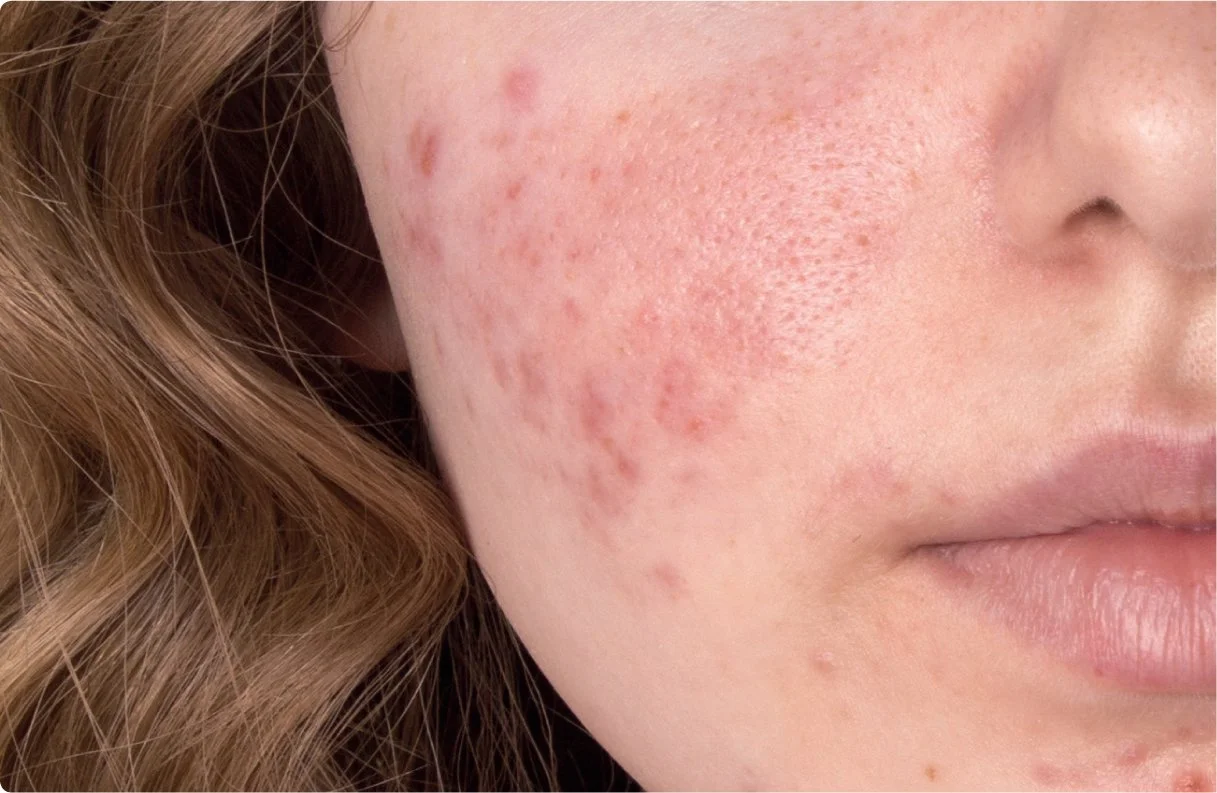 Sometimes, it can be mistaken for acne and dermatitis. Dermatitis is short-term, local inflammation of the skin, appearing as dry patches and redness; but unlike rosacea, dermatitis occurs with a reason behind it. Most of the time it comes from using the wrong skin care product, like the ones that have harsh chemicals in them, which causes rashes. To get rid of dermatitis, you need to stop using the product that caused it in the first place, and use a topical hormone/estrogen cream.